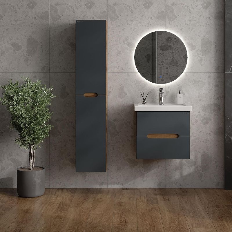 Подвесная тумба Onika Айленд 50 – это отличное решение для ванной комнаты, сочетающее стиль и практичность. Тумба впишется в любой интерьер благодаря трендовому сочетанию матового графита и золотого дуба, а также поможет эффективно организовать пространство, что особенно важно в небольших ванных комнатах.