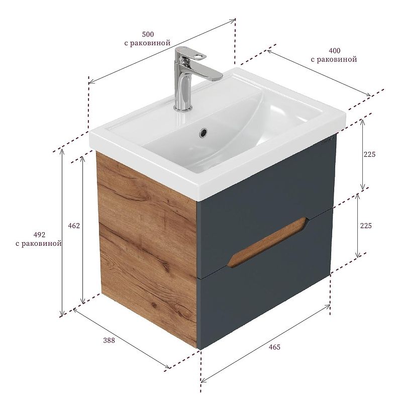 Тумба под раковину подвесная Onika Айленд 105041 50 см графит/дуб крафт золотой купить