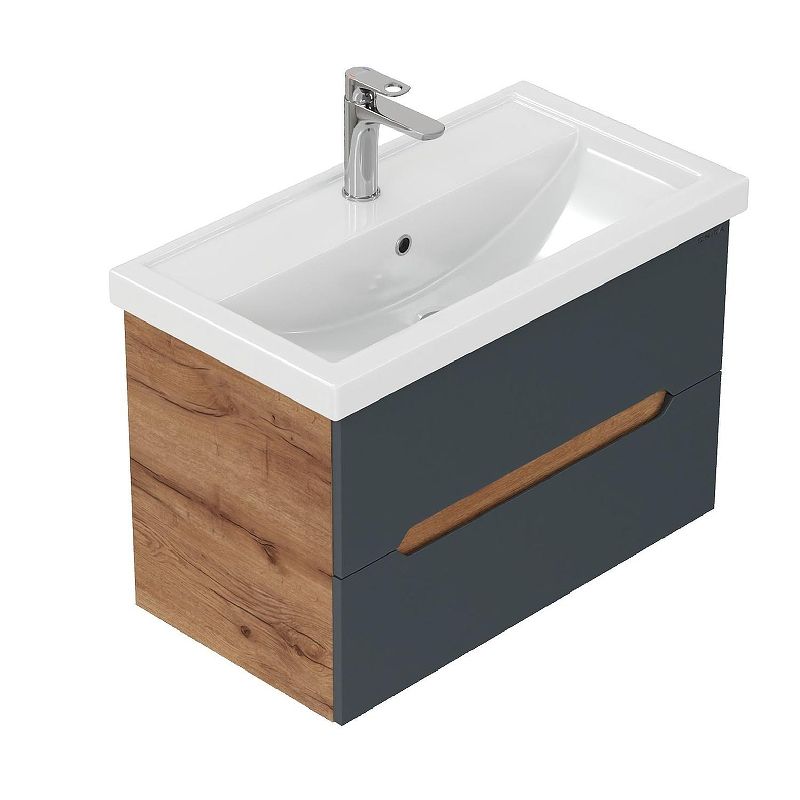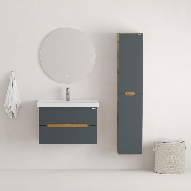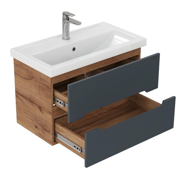 Подвесная тумба Onika Айленд 80 – это отличное решение для ванной комнаты, сочетающее стиль и практичность. Тумба впишется в любой интерьер благодаря трендовому сочетанию матового графита и золотого дуба, а также поможет эффективно организовать пространство, что особенно важно в небольших ванных комнатах.
