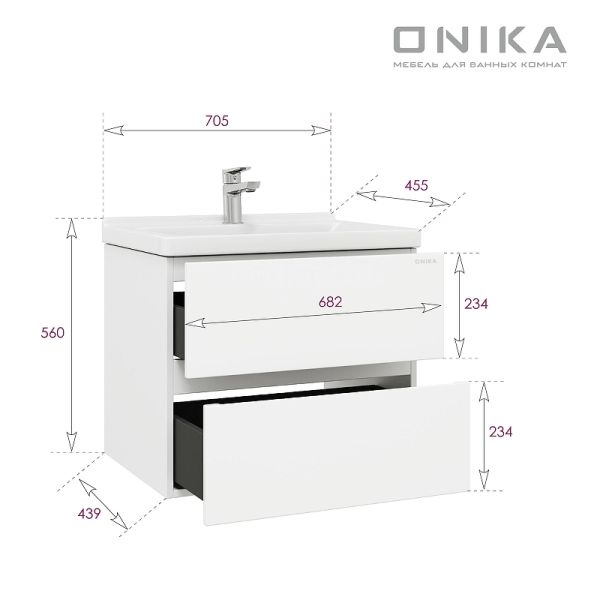 Тумба под раковину подвесная Onika Эвада 107061 70 см белый