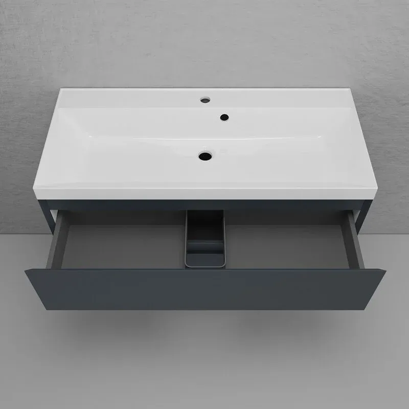 Эмаль премиум класса Hesse (Германия) с сатиново - матовым эффектом. Вместительные ящики оснащены системой плавного закрывания HETTICH. Раковина приобретается отдельно. Подходит раковина Asti 100 в белом цвете, графит, жасмин и серый шелк.