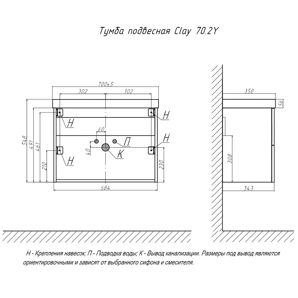 Тумба под раковину подвесная Velvex Clay tp.CLA.9595.70.2Y дуб верона, 70 см купить