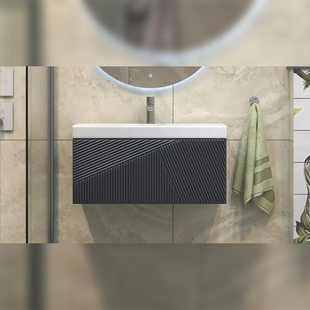 Тумба под раковину подвесная Velvex Edge tp.EDG.9696.80.1Y графит, 80 см: 1 выдвижной ящик с механизмом открывания push-to-open.