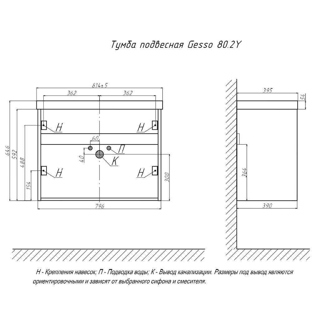 Тумба под раковину подвесная Velvex Gesso tp.GES.9696.80.2Y белый матовый/дуб сонома, 80 см: 2 выдвижных ящика с механизмом открывания push-to-open.