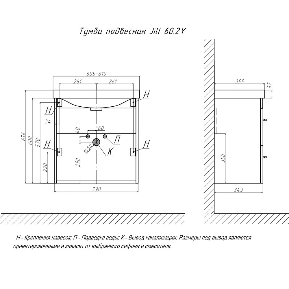 Тумба под раковину подвесная Velvex Jill tp.JIL.9595.60.2Y белый матовый, 60 см: 2 выдвижных ящика с механизмом плавного закрывания.