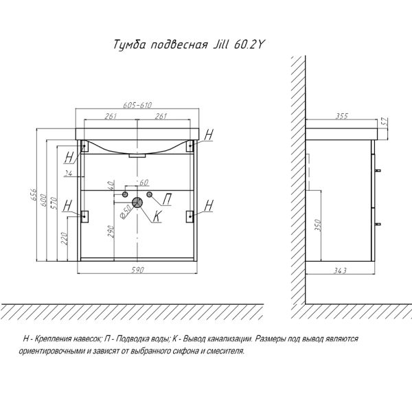 Тумба под раковину подвесная Velvex Jill tp.JIL.9595.60.2Y белый матовый, 60 см