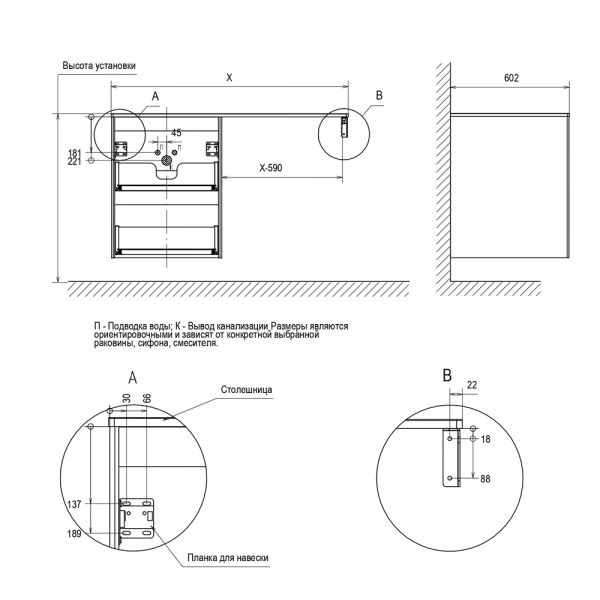 Тумба под раковину подвесная Velvex Klaufs tp.KLA.56.2Y, 55 см