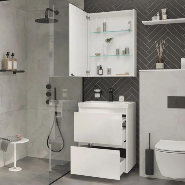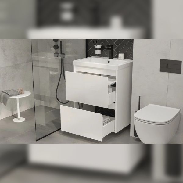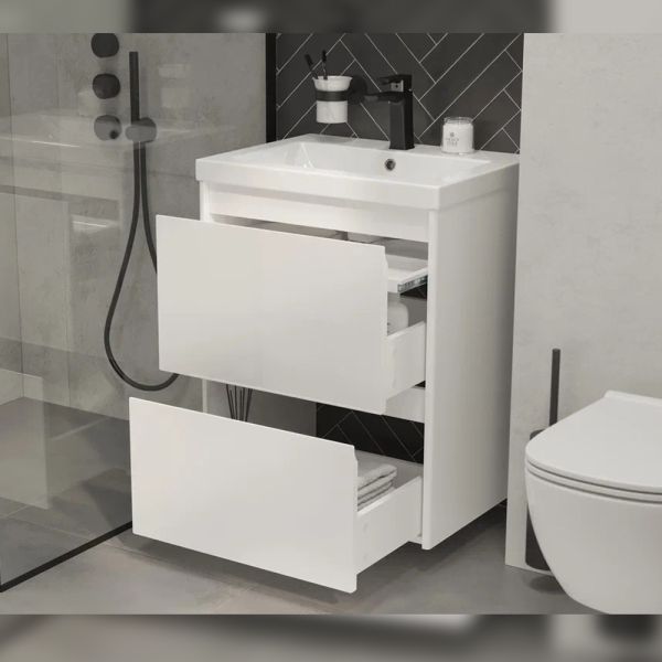 Тумба под раковину подвесная Velvex Klaufs tp.KLA.COM.60.2Y, 60 см: 2 выдвижных ящика, выдвижной органайзер.