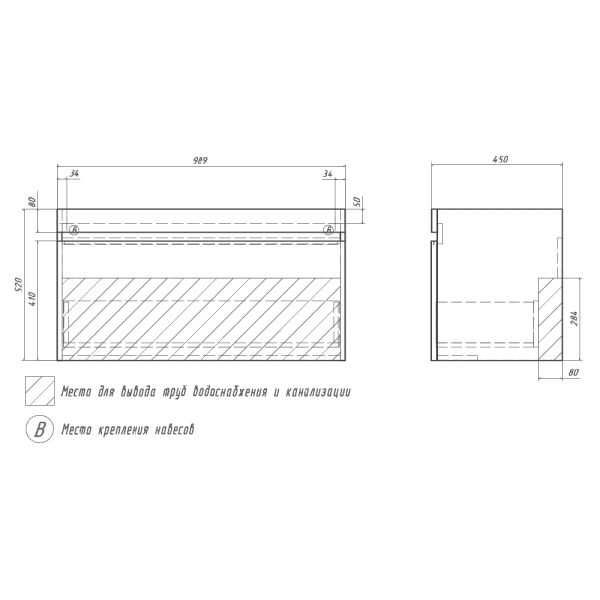 Тумба под раковину подвесная Velvex Otto tp.OTO.OTT.100.1Y белый глянец, 100 см: 1 выдвижной ящик.