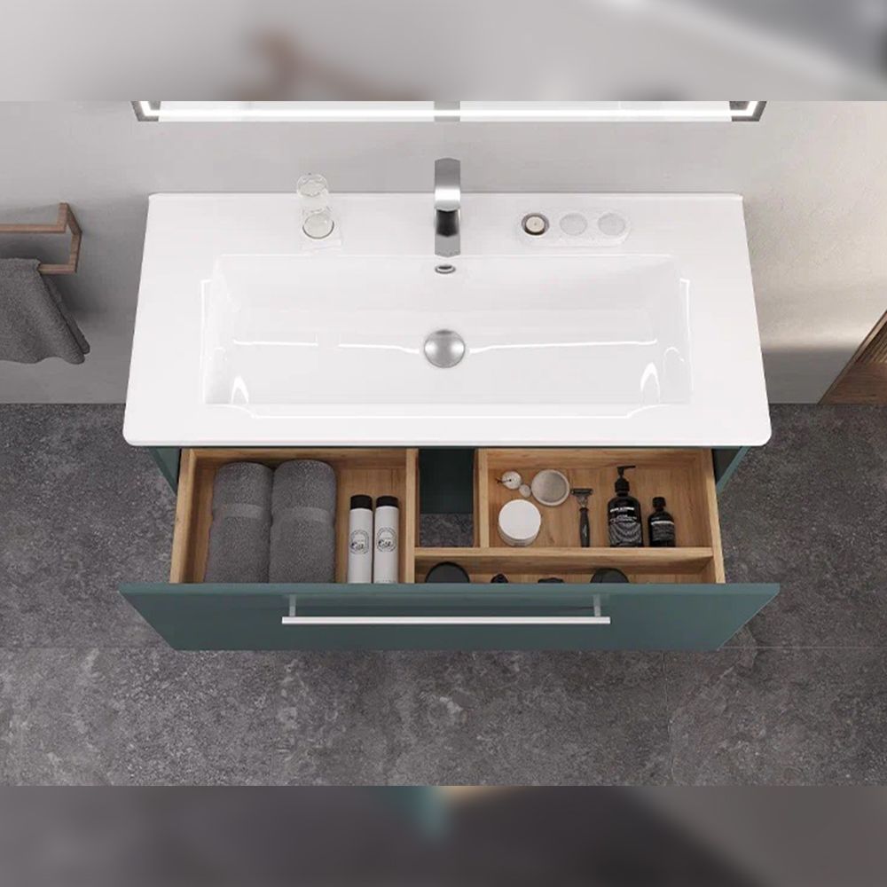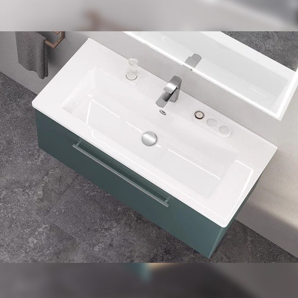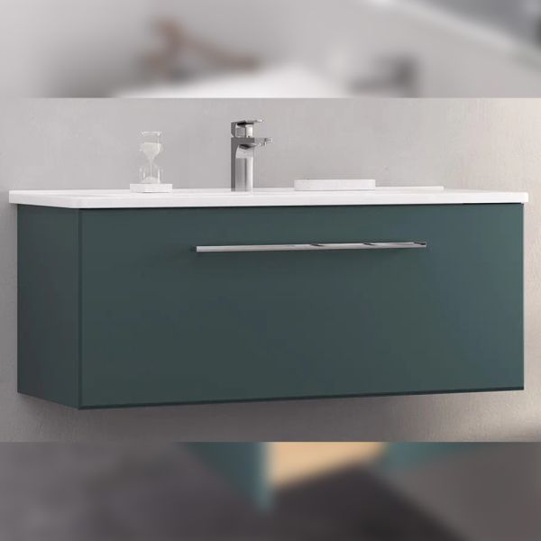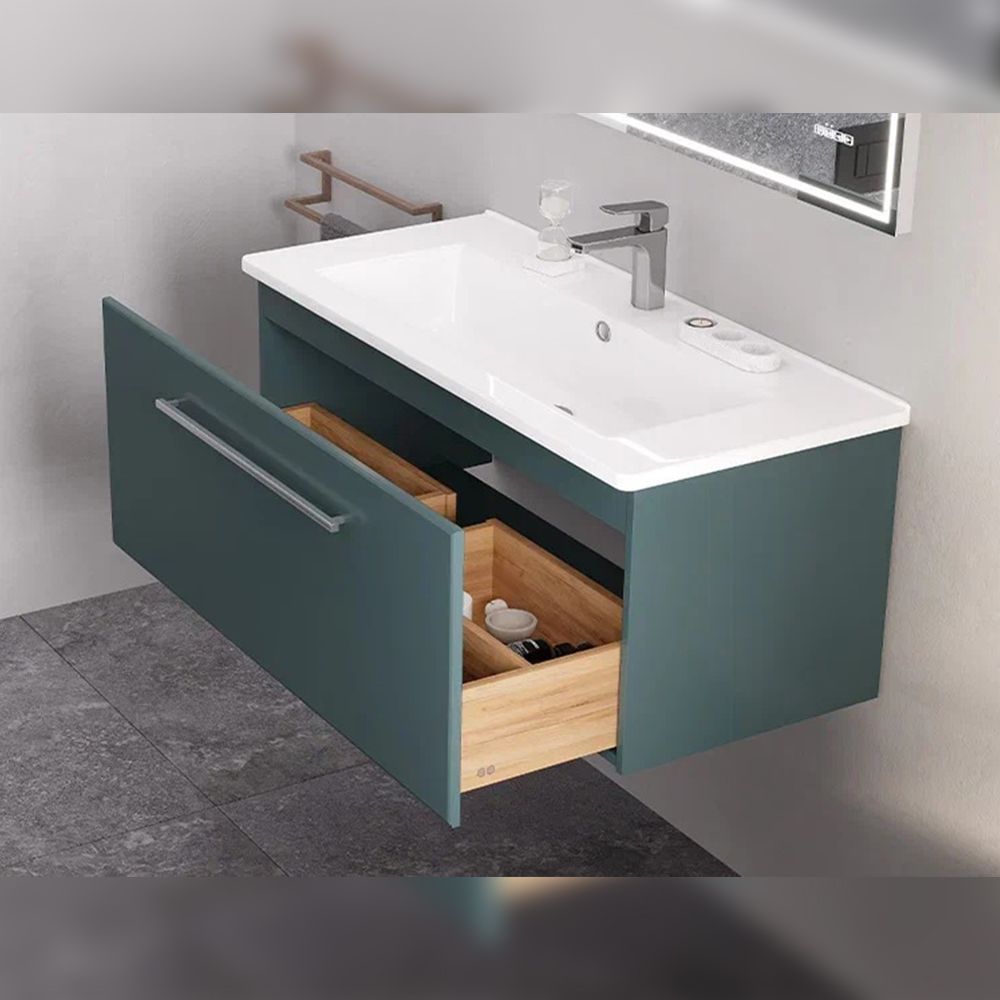 Тумба под раковину подвесная Velvex Posse tp.POS.OSK.105.1Y верде, 105 см: 1 выдвижной ящик с механизмом плавного закрывания.