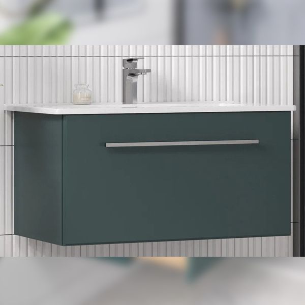 Тумба под раковину подвесная Velvex Posse tp.POS.OSK.85.1Y верде, 85 см: 1 выдвижной ящик с механизмом плавного закрывания.