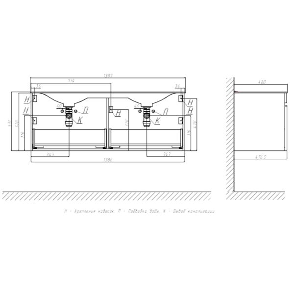 Тумба под раковину подвесная Velvex Pulsus tp.PUL.PUL.140.2Y белый глянец, 140 см: 2 выдвижных ящика.