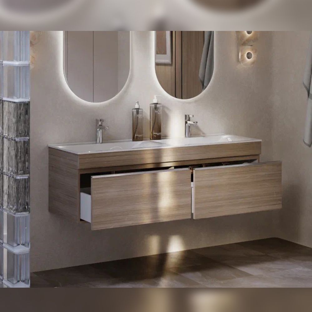 Тумба под раковину подвесная Velvex Pulsus tp.PUL.PUL.140.2Y дуб сонома, 140 см: 2 выдвижных ящика.