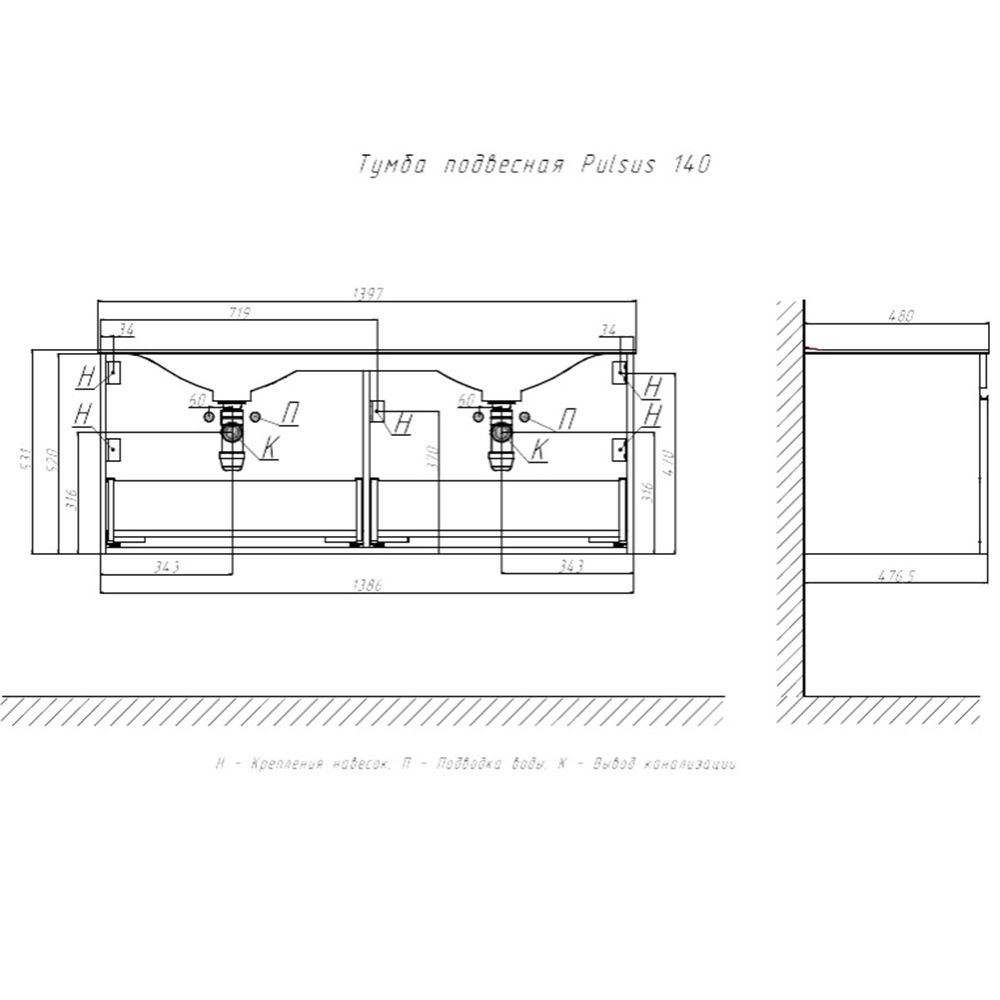 Тумба под раковину подвесная Velvex Pulsus tp.PUL.PUL.140.2Y дуб сонома, 140 см купить