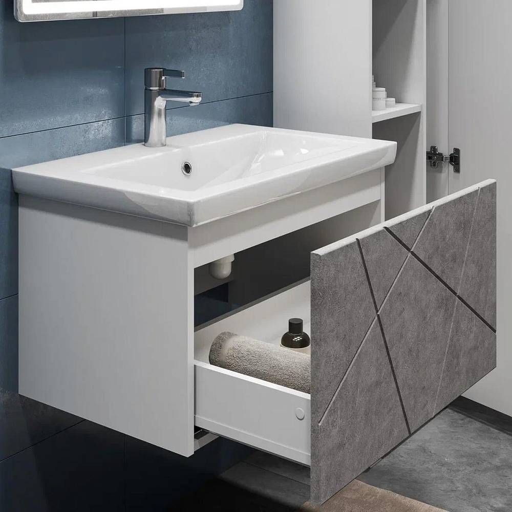 Тумба под раковину подвесная VIGO Geometry 034 бетон, 70 см.Гарантийный срок 2 года.Монтаж: подвесной.Доводчик: нет.Нажимной механизм: да.