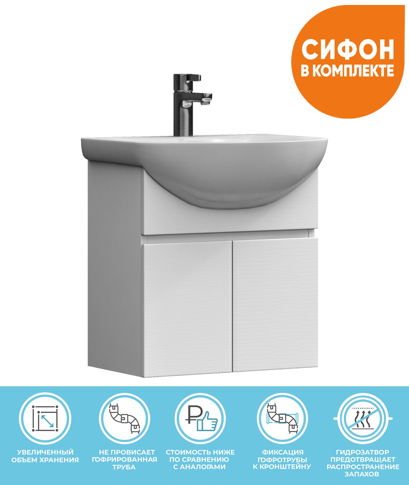 2 дверцы. Специальный сифон Vigo в комплекте.Материал корпуса и фасада: влагостойкая ЛДСПДверцы:... Подробнее