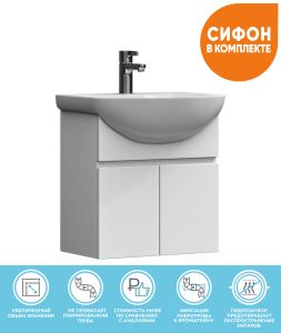 2 дверцы. Специальный сифон Vigo в комплекте.Материал корпуса и фасада: влагостойкая ЛДСПДверцы: петли с механизмом плавного закрыванияОтсутствие лицевой фурнитуры – интегрированная в фасад ручка