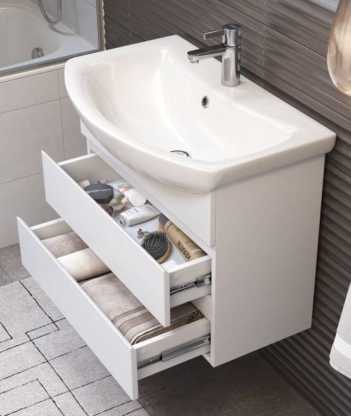 2 ящика. Специальный сифон Vigo в комплекте.Материал корпуса и фасада: влагостойкая ЛДСПЯщики: направляющие полного выдвиженияОтсутствие лицевой фурнитуры – интегрированная в фасад ручка