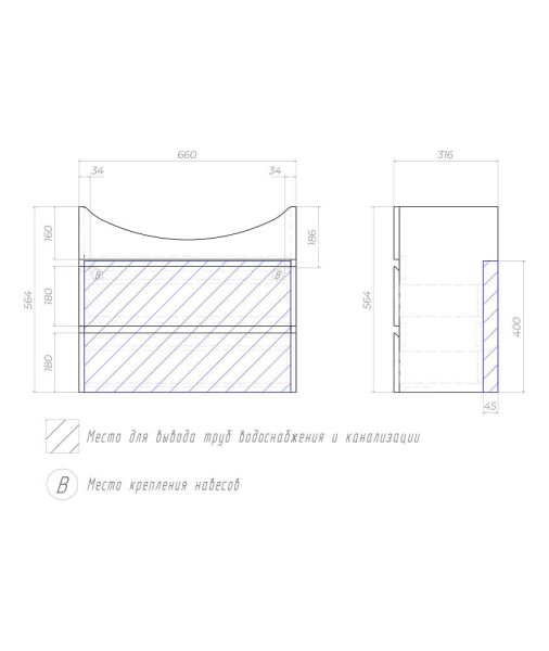 Тумба под раковину подвесная Vigo Wing tp.WIN.BAL.70.2Y 70 см белый