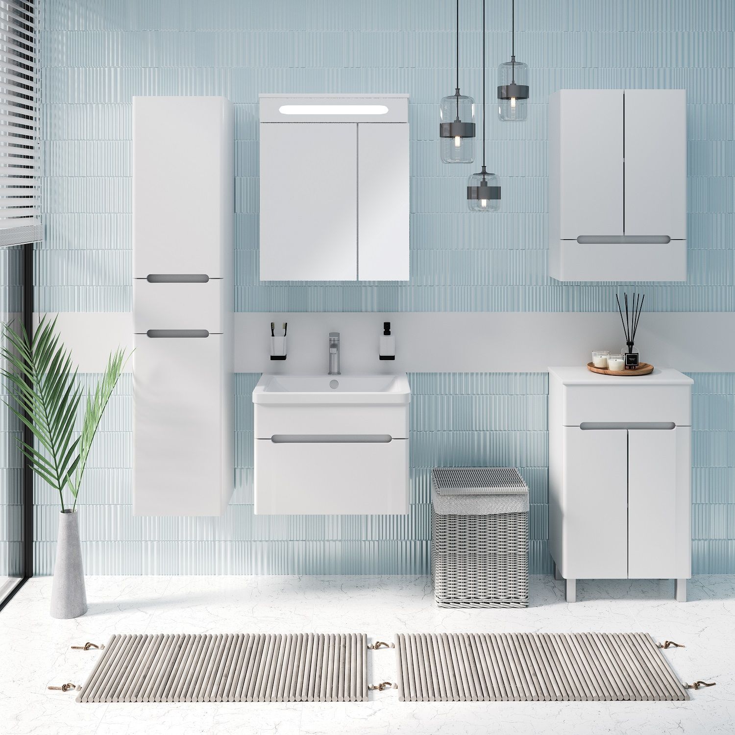 Тумба под умывальник напольная с двумя распашными дверками. Петли со встроенным доводчиком, ножки хром - 2шт, ножки пластик - 2шт.