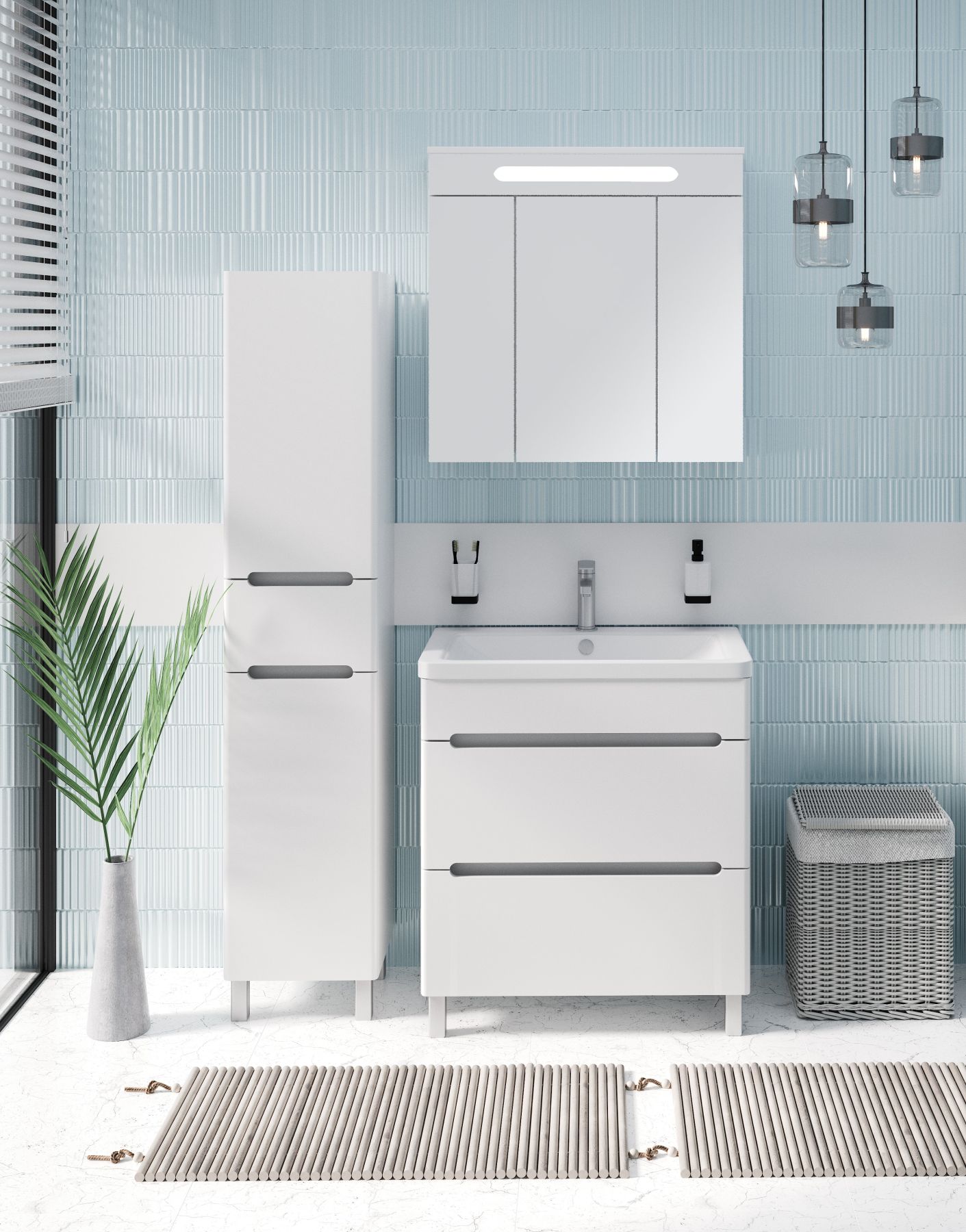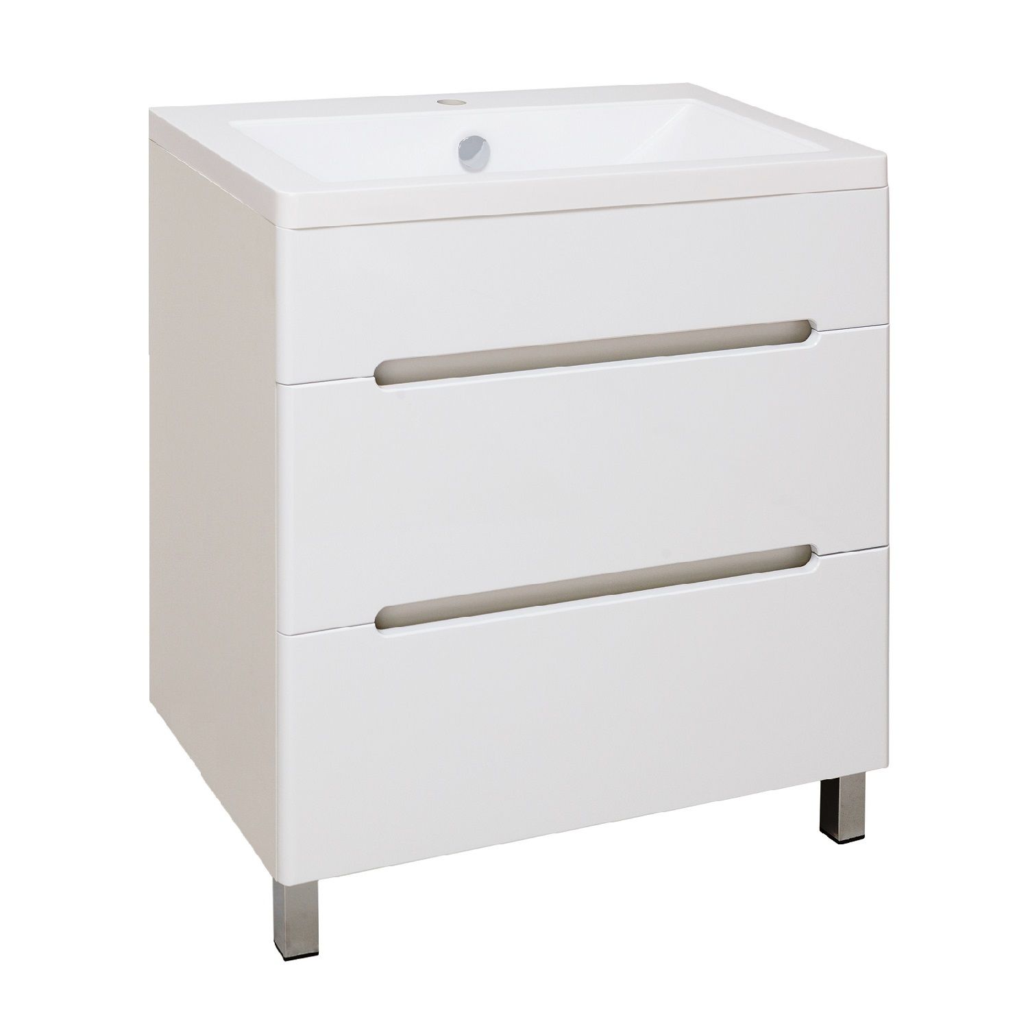 Тумба под умывальник напольная с двумя выдвижными ящиками на шариковых направляющих скрытого монтажа с доводчиком. Ножки хром - 2шт, ножки пластик - 2шт.