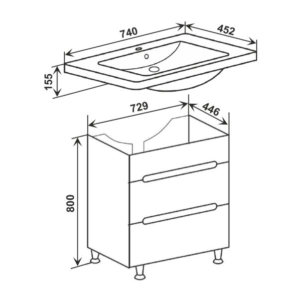 Тумба под раковину Runo напольная 2 ящика (под умывальник Omega 75) Парма 75 (00000001141)