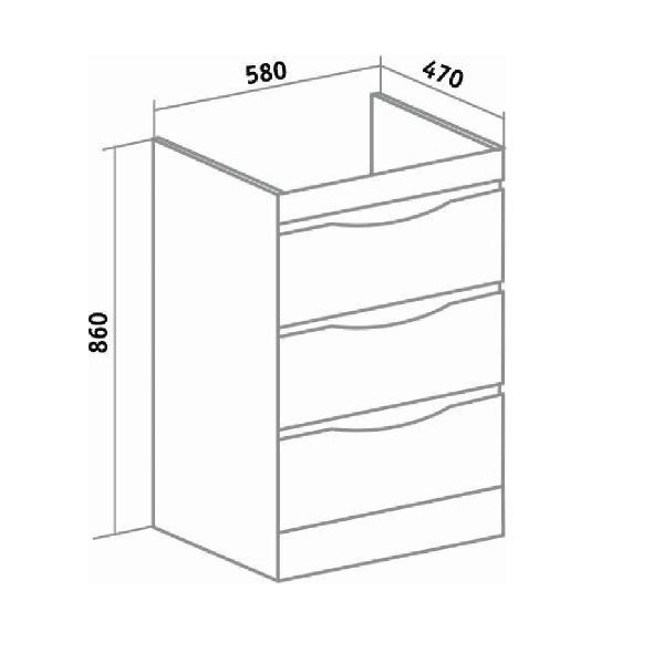 Тумба под умывальник напольная с тремя выдвижными ящиками на шариковых направляющих скрытого мон... Подробнее