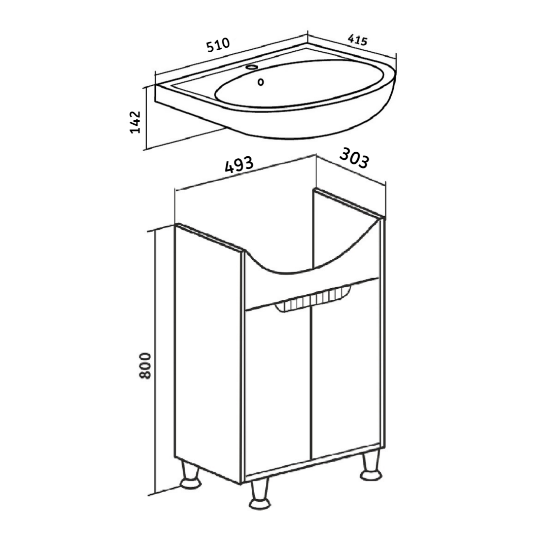 Тумба под раковину Runo (под умывальник Уют 50) Эко 50 (00000001142)