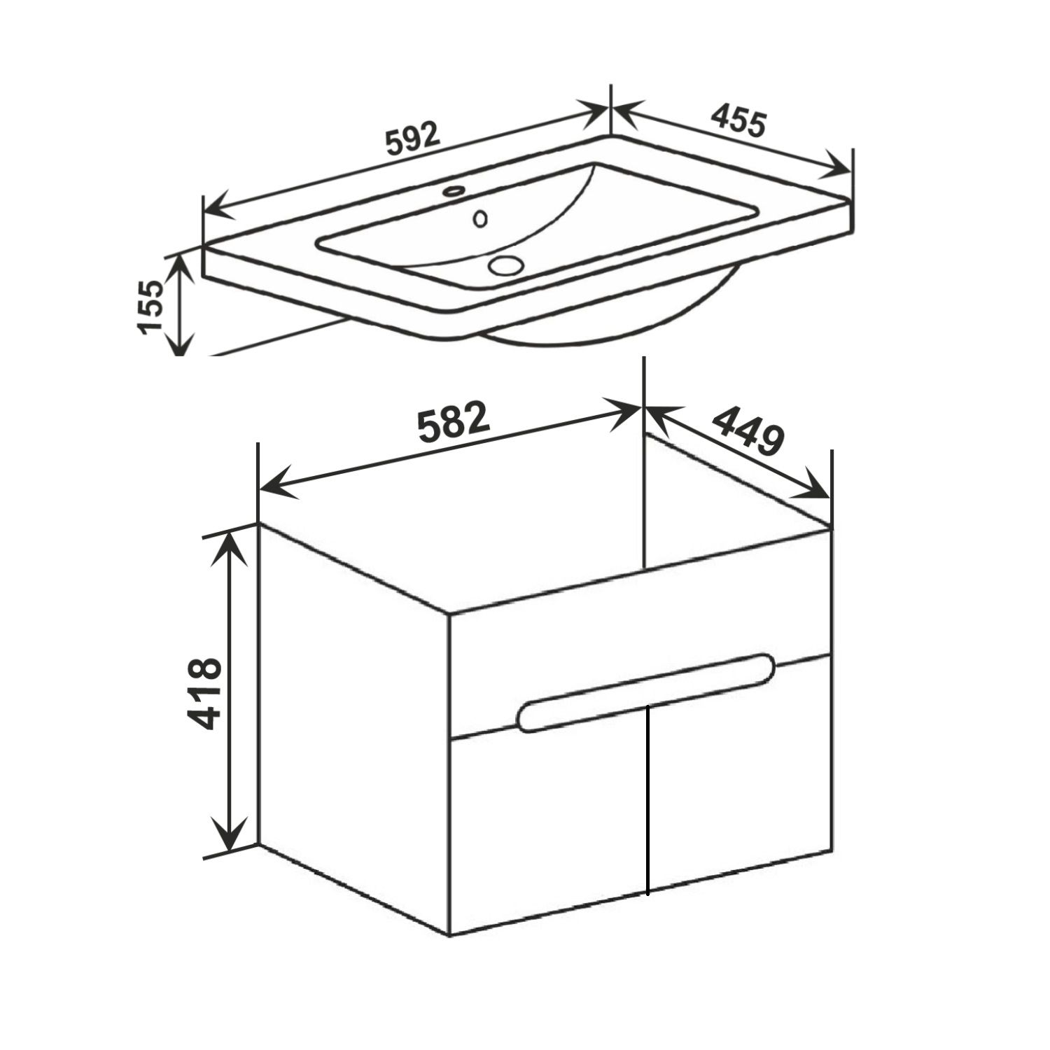 Тумба под раковину Runo подвесная 2 двери (под умывальник Omega 60) Парма 60 (00-00001037)