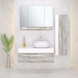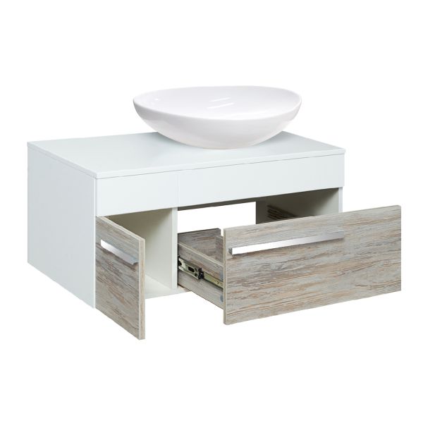 Тумба подвесная под умывальник с выдвижным ящиком. Благодаря универсальному отверстию на столешнице тумба может комплектоваться различными вариантами накладных раковин: модель «Caspia» 60 TM Cersanit с вместительной чашей овальной или квадратной формы или раковина «Гамма» 56 ТМ Kirovit c глубокой чашей и высокими бортиками, которые отражают современные тренды в дизайне. Ящик на шариковых направляющих, оснащенных системой плавного закрывания.