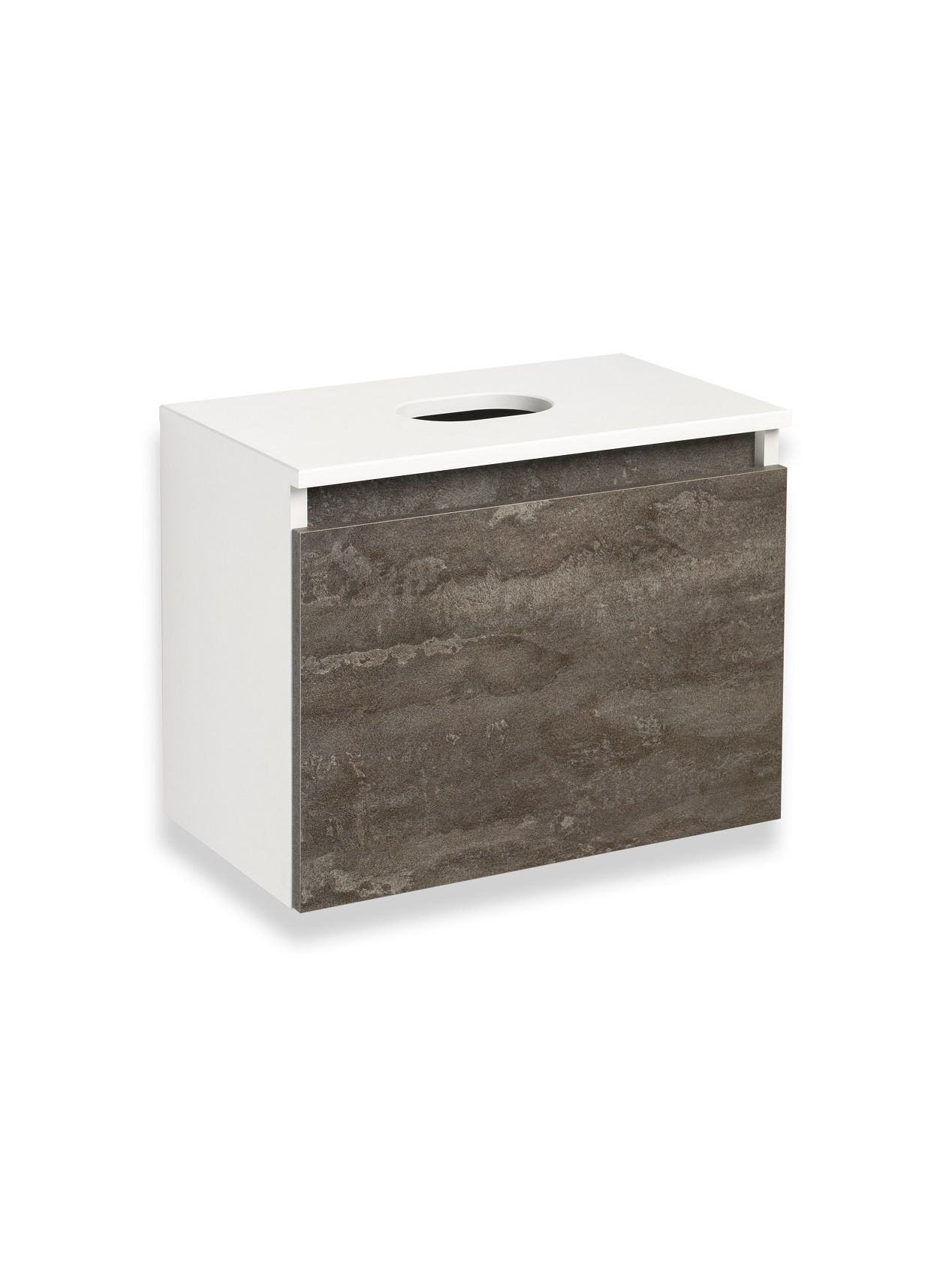 Тумба под раковину в ванную RUNO БАРИ (подвесная) - безупречное сочетание модных тенденций с классическим оформлением ванной комнаты. Тумба под раковину БАРИ оснащена выдвижным ящиком на шариковых направляющих, с системой плавного закрывания. Цвет корпуса классический - белый, при этом цвет фасада в модном цвете – железный камень, идеально впишутся в любой интерьер ванной комнаты. К тумбе для ванной подойдут умывальники на столешницу: «UNO 24» (24х24см) – очень маленькая модель, идеально подходит для ограниченного пространства в небольших помещениях. Строгая квадратная геометрически правильная форма раковины, усиливает идею лаконичности в дизайне, устанавливается на столешницу, накладным методом. «DUE 38» (38х24см) – маленькая модель, идеально подходит для ограниченного пространства в небольших помещениях. Строгая прямоугольная геометрически правильная форма раковины с округлыми углами, усиливает идею лаконичности в дизайне, устанавливается на столешницу, накладным методом.
