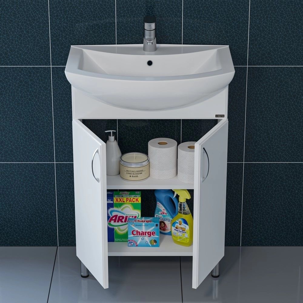 Тумба для комплекта СанТа подойдет как для просторной ванной комнаты, так и для небольшого помещения. Напольный способ установки производится непосредственно на пол, при этом конструкция максимально устойчива при серьезных физических нагрузках.В производстве используют только качественные влагостойкие материалы (ВЛДСП), в составе которых полностью отсутствуют опасные вещества. Серия Венера отличается превосходным дизайном с соблюдением всех ключевых элементов современного стиля. Основным цветом, в котором выполнена тумба под раковину СанТа является белый, гармонирующий с большинством интерьерных решений. Тумба под раковину предусматривает удобную и вместительную систему хранения, состоящую из полок и дверей.Страной бренда СанТа является Россия, все товары производятся с выполнением соответствующих стандартов качества, что позволяет быть полностью уверенными в долговечности и надежности. Тумба для комплекта СанТа поможет сделать уютным любой интерьер и создать идеальную ванную комнату.