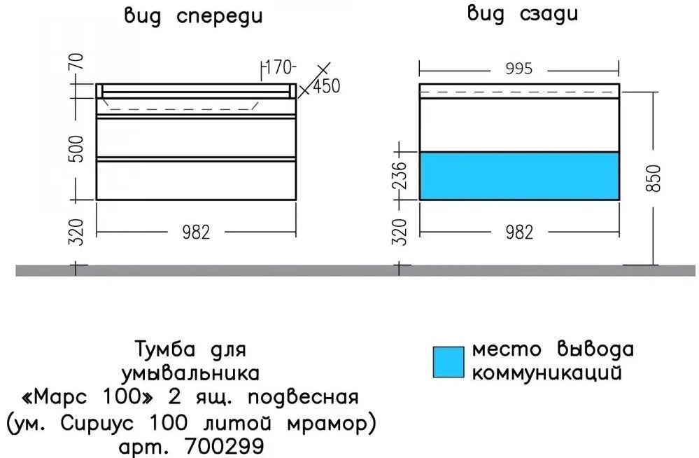 Тумба под раковину СанТа Марс 700299 100см белый купить