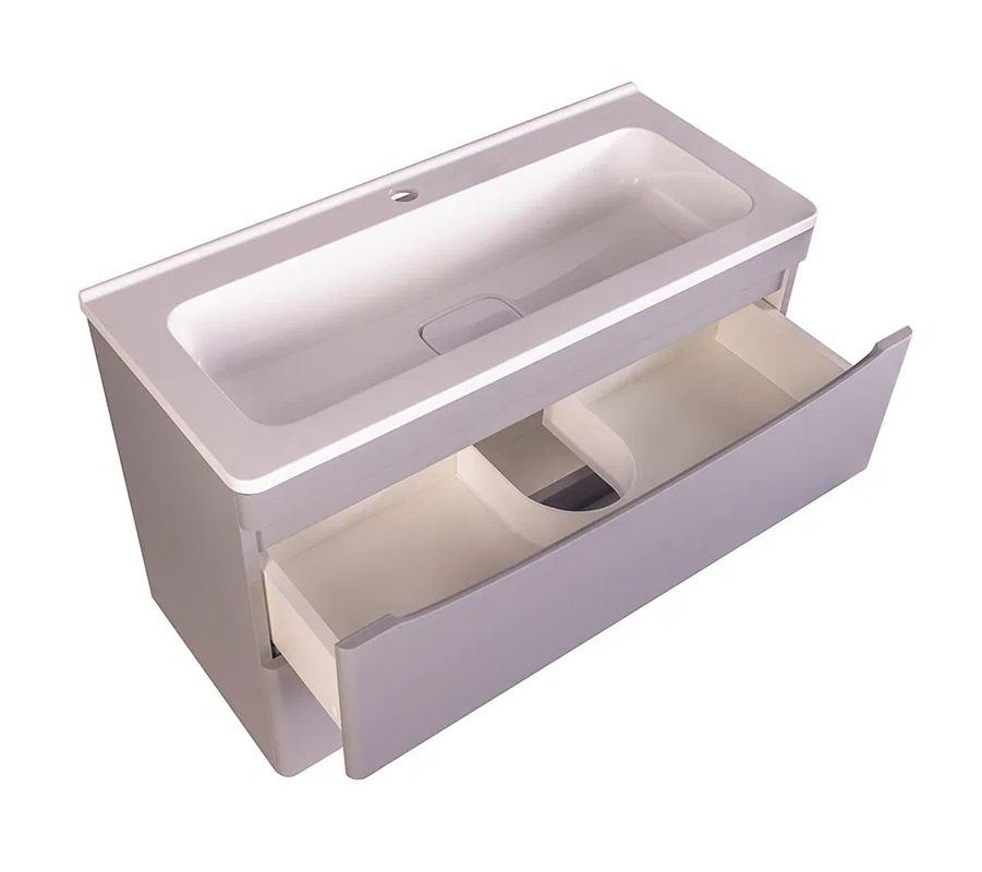 Тумба под раковину Style Line El Fante Бергамо мини 80 Люкс антискрейтч Plus, 80 см, подвесная, серый, СС-00002323Основные характеристики:Тумба под раковину