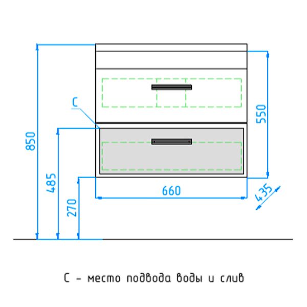 Габариты корпуса тумбы (ШхВхГ): 660х550х435 мм.