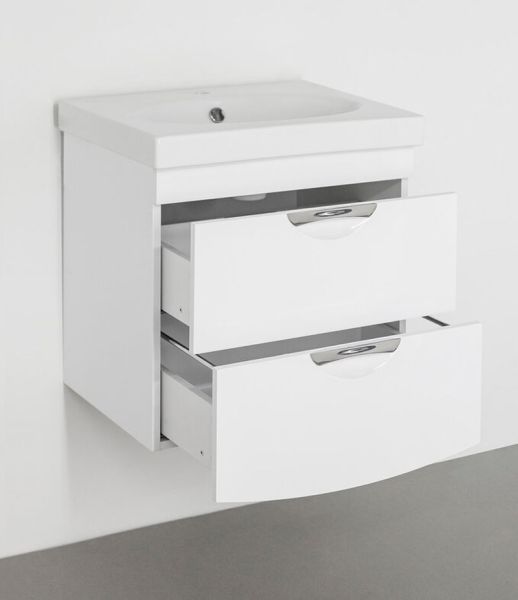 Тумба подвесная бренда "Style Line" коллекции "Жасмин 2" с двумя ящиками и стильными врезными ручками. Фурнитура - хром. Доводчики "Hettich" обеспечивают плавность и бесшумность хода, высокую надежность и прочность. Боковины изделий в пленке в цвет фасадов. Данная тумба предусматривает открытую подводку воды