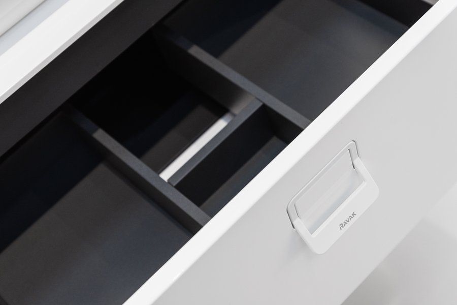 Для полного решения и согласованности дизайна ванной комнаты мы рекомендуем комбинировать тумбу SD Comfort 800 с другими продуктами серии Comfort (умывальники Comfort, умывальники для столешницы (Uni, Uni Slim и т.д.), высокий шкаф SB Comfort 400 или SB Comfort 350) и другими изделиями RAVAK.