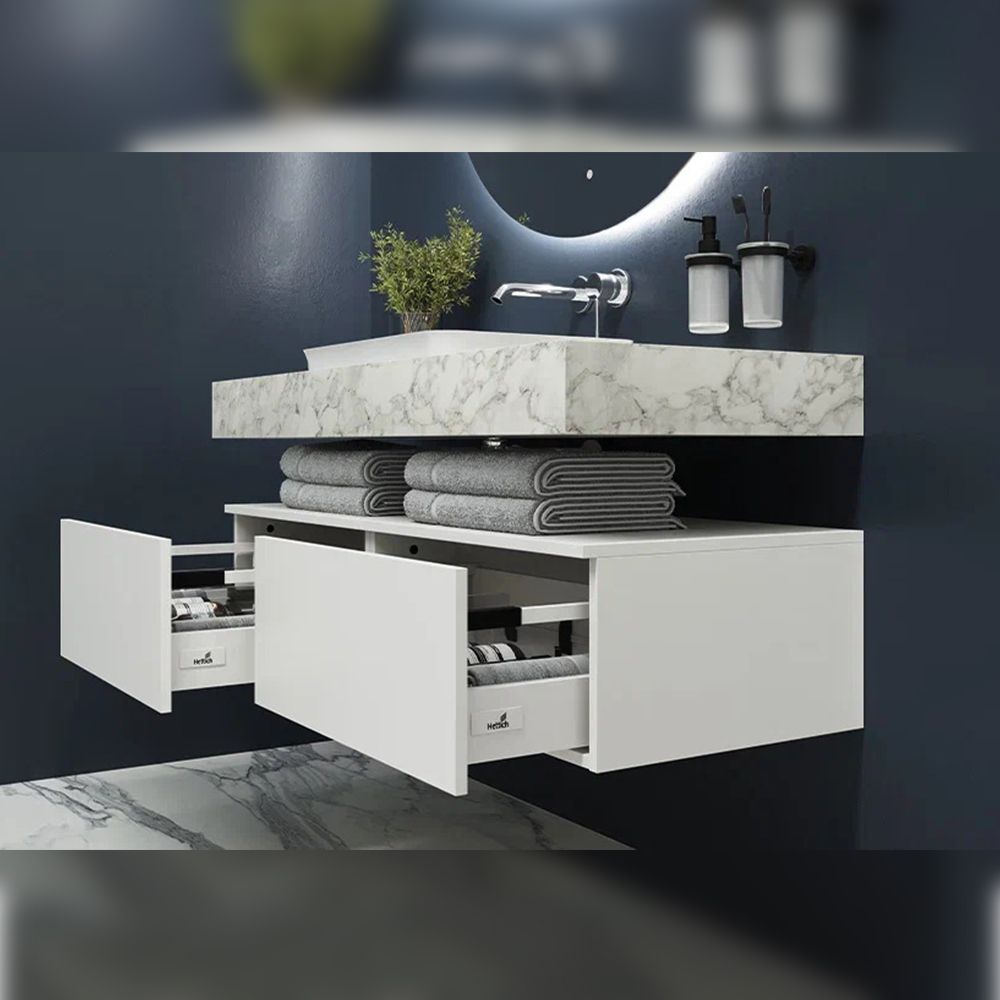 Тумба подвесная без столешницы Velvex Unit tp.UNI.60.1Y белый глянец, 60 см: 1 выдвижной ящик со стеклянными разделителями.