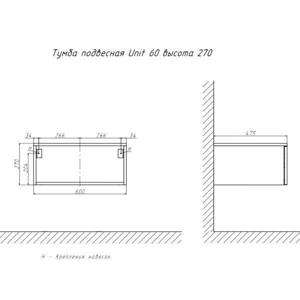 Тумба подвесная без столешницы Velvex Unit tp.UNI.60.1Y белый глянец, 60 см