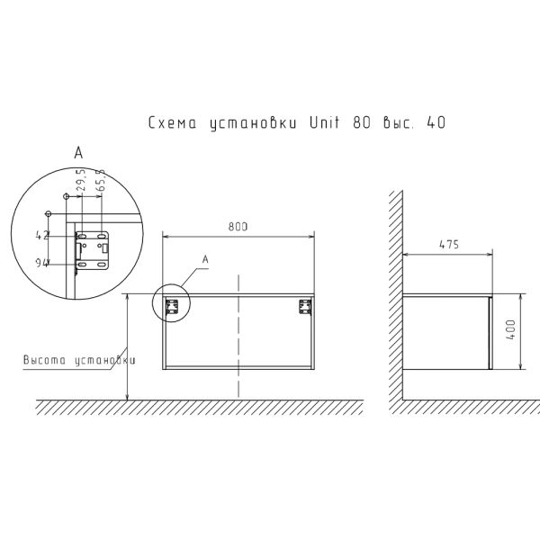 Тумба подвесная без столешницы Velvex Unit tp.UNI.80.2Y белый глянец, 80 см купить