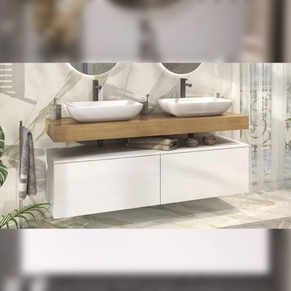 Тумба подвесная без столешницы Velvex Unit tp.UNI.80.2Y белый глянец, 80 см: 1 выдвижной ящик со стеклянными разделителями, 1 внутренний выдвижной ящик.