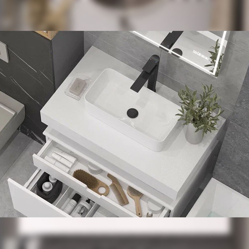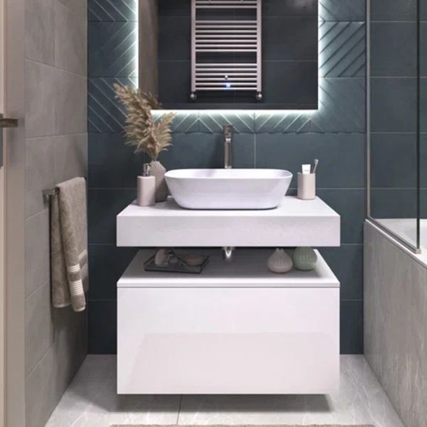 Тумба подвесная без столешницы Velvex Unit tp.UNI.80.2Y белый матовый, 80 см: 1 выдвижной ящик со стеклянными разделителями, 1 внутренний выдвижной ящик.