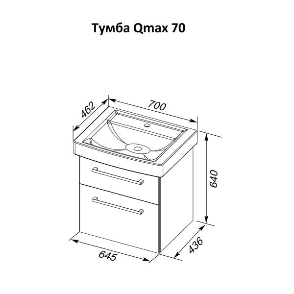 Тумба подвесная Dreja.Rus Q MAX 70 под умывальник Q-70, белый глянец