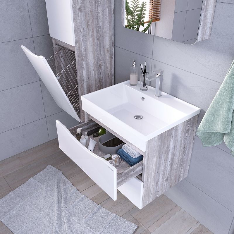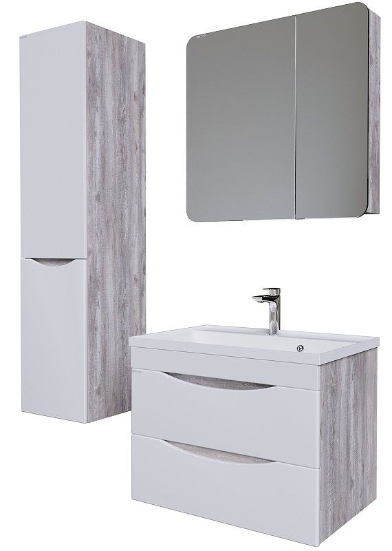 Тумба подвесная под раковину Grossman Талис 107011 70см бетон пайн/белый глянец купить