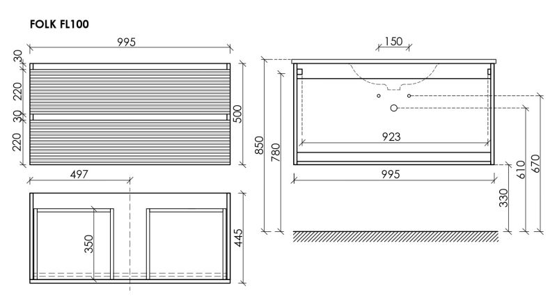 На изображении тумба Folk представлена с зеркалом RAY, смесителем из коллекции ETNA и раковинами Grace CN7013M