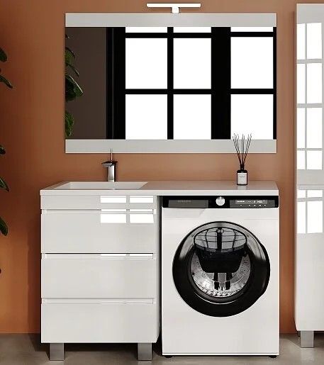 Тумба подвесная Style Line Даллас Леон 120 Люкс Plus СС-00002439 под раковину для стиральной машины три ящика белый купить