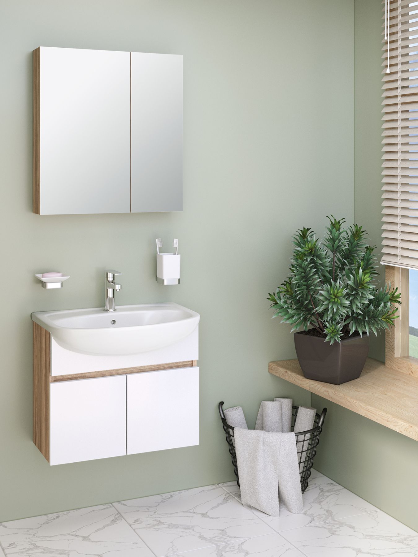 Тумба под раковину для ванной RUNO ЛАДА - модное и оригинальное решение для бюджетного оснащения ванной комнаты. Коллекция мебели ЛАДА выполнена в цвете - блэквуд/белый. Тумба под раковину оснащена двумя распашными дверцами, каждая дверца укомплектована двумя петлями, верхняя с доводчиком, нижняя без доводчика. К тумбе подходит керамическая раковина "Уют" (610*470 мм). Раковина глубиной 20,5 см. Мебель для ванной RUNO - красота и практичность в мелочах!