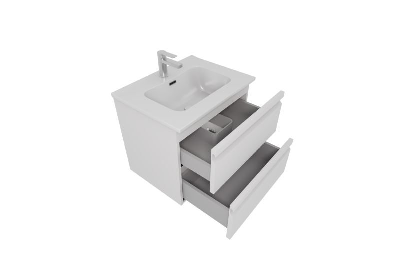 Мебельная раковина: Раковина из 100% санфарфора с идеальной гладкой поверхностью не только выглядит стильно, но и обеспечивает легкость в уходе. Несмотря на компактную глубину, раковины обладают достаточно вместительной чашей, предотвращающей разбрызгивание воды.