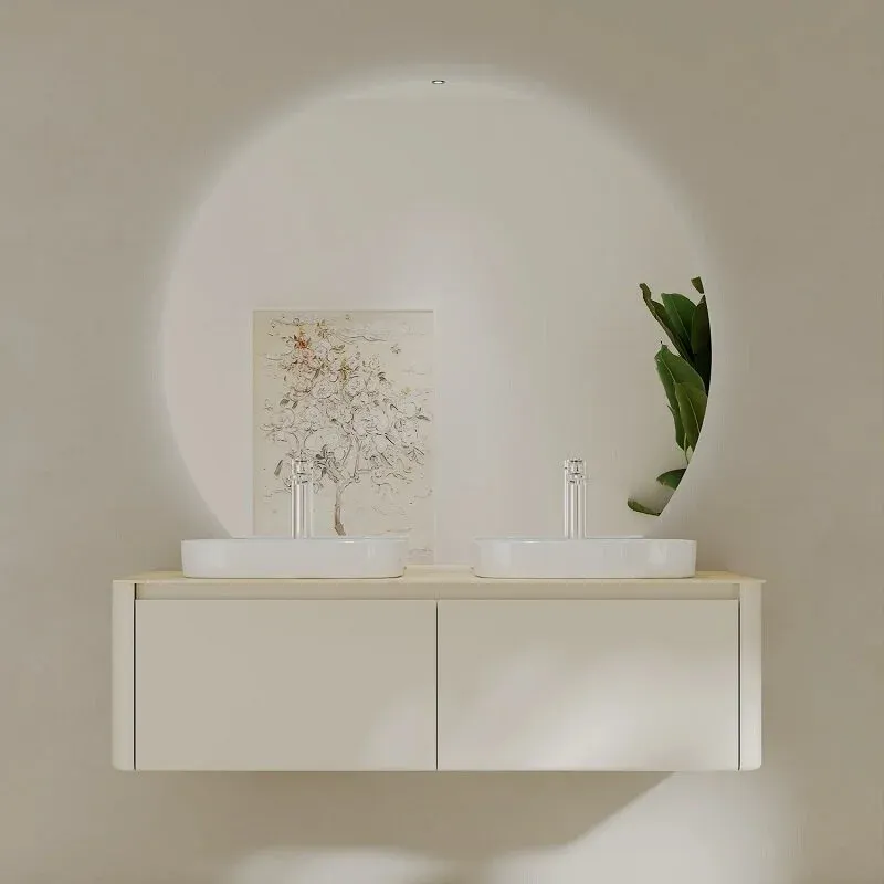 • В комплекте: тумба, две раковины, донные клапаны push‑open, комплект крепежа, инструкция по установке (зеркало и смесители приобретаются отдельно)
