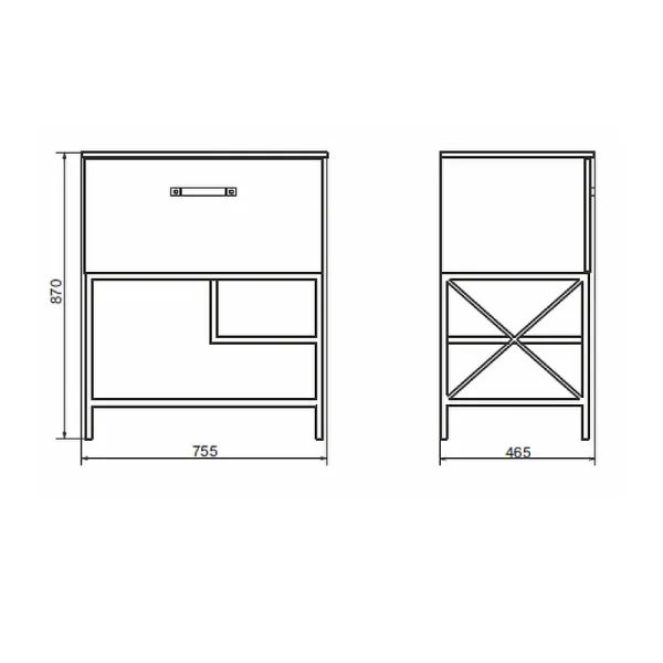 Тумба с раковиной Comforty Бредфорд 00-00013442 75.5 см белый графитНапольная тумба с одним большим выкатным ящиком оборудованным системой плавного закрывания. Корпус тумбы изготовлены из влагостойкого ДСП, фасад из МДФ. Корпус и фасад окрашены белой глянцевой эмалью. В комплекте белая раковина с прямоугольной чашей. В основе тумбы - каркас из стального профиля окрашенный эмалью цвет серый графит с нижней широкой полкой и средней полкой для полотенец. Стильная ручка ящика в том же цвете что и каркас. Тумба подготовлена для подключения водоснабжения снизу. Комплектация: белая керамическая раковина Comforty 75E